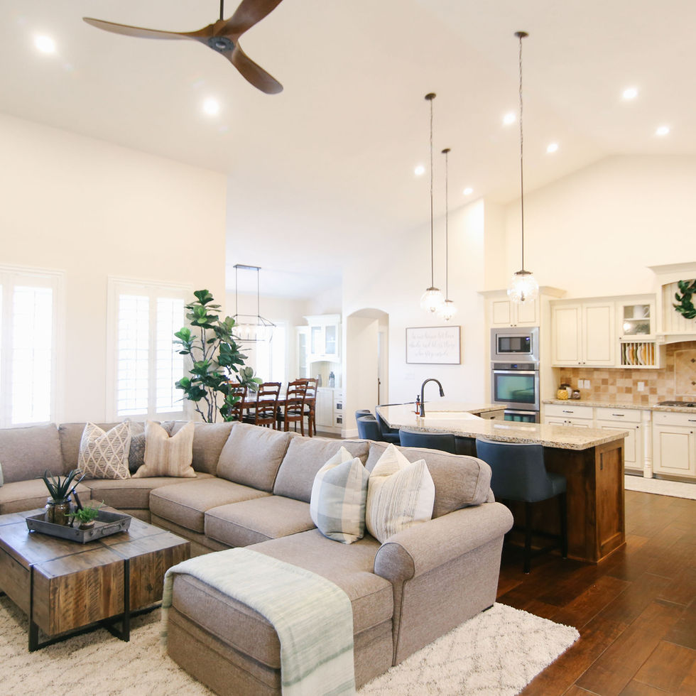 A new coat of fresh paint, adding more can lights, and changing old light fixtures. Brought so much more light into this home. After updating furnishings and adding a few accessories there is no need to move!